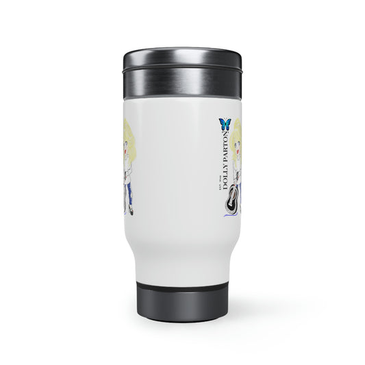 Artist Rendering of Dolly Parton in a Stainless Steel Travel Mug with Handle, 14oz